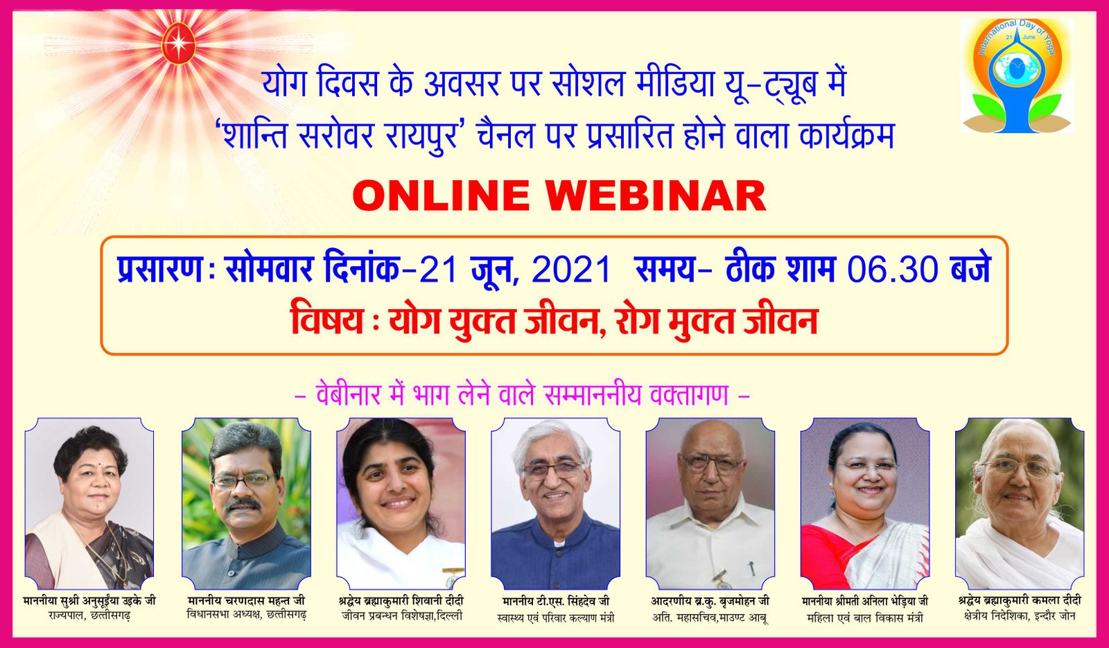 अन्तराष्ट्रीय योग दिवस पर ऑनलाइन आयोजित बेबीनार में राज्यपाल और विधानसभा अध्यक्ष ने लिया भाग